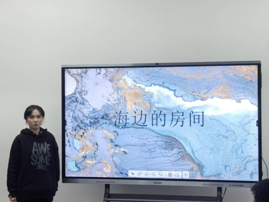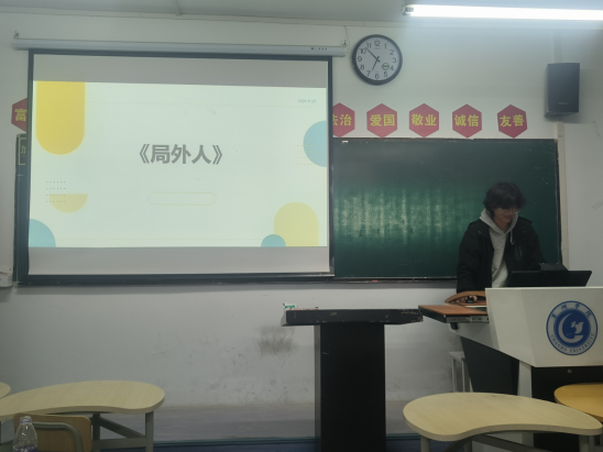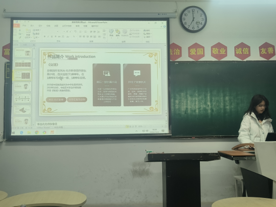 第三期“英文悅讀”讀書沙龍交流分享會由七名同學依次分享閱讀讀物,各位同學從閱讀過的書籍中,挑選一本讀物分享推薦。同學們精心制作PPT,從作者簡介、內容概要、精彩片段和讀后感悟四個部分依次做分享與交流。張鑫帶同學們領略書中平靜卻富有深意的文字,表面上看似平淡無奇,實際上卻暗藏玄機,如同平靜的海面下隱藏著刺骨的海水和暗礁。李雨潔推薦了《天堂旅行團》書籍,書中通過一系列感人至深的情節,展示了主人公宋一鯉在面對原生家庭的重壓、婚姻失敗、母親去世等一系列打擊時的心理掙扎。她借以此書向同學們表達了即使在最黑暗的時刻,愛和希望仍然能夠成為我們前行的動力的想法,同學們都產生了強烈的情感共鳴。