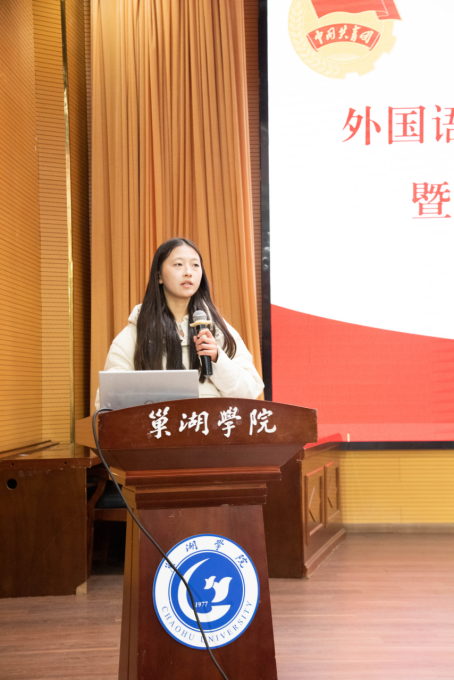 2024級商務英語專業代婉兒同學代表團學組織新生干事發言,她表示自己在學院青協收獲頗多,在合肥八院陪醫護診、崗嶺社區英語角、校園清掃志愿服務等活動中,體驗到樂于助人的樂趣,各方面能力都得到全面提升。