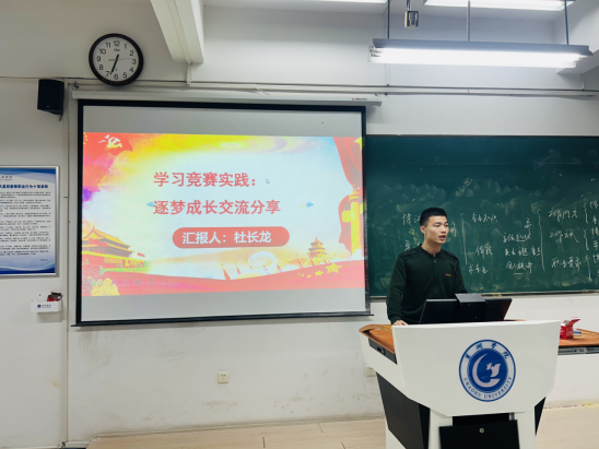 會(huì)議伊始,余仁能圍繞四名學(xué)子的學(xué)習(xí)經(jīng)歷和獲獎(jiǎng)情況進(jìn)行了詳細(xì)的介紹,隨后四位同學(xué)分別進(jìn)行分享。冷若雨從大學(xué)生應(yīng)有的學(xué)習(xí)態(tài)度著手,她強(qiáng)調(diào),英專生應(yīng)當(dāng)在專業(yè)方面下功夫,課前預(yù)習(xí)課后復(fù)習(xí),保持良好的作息,積極參與學(xué)科競(jìng)賽,充實(shí)提高自己。姚文靜表示,大一新生應(yīng)在生活適應(yīng)和習(xí)慣養(yǎng)成方面多下點(diǎn)功夫,培養(yǎng)對(duì)專業(yè)的認(rèn)同感,夯實(shí)專業(yè)基礎(chǔ),提前制定職業(yè)規(guī)劃,充分利用大學(xué)校園生活,多方面提升自我。杜長(zhǎng)龍是一名退伍復(fù)學(xué)的大三學(xué)長(zhǎng),分享了自己入伍期間的光榮歲月,呼吁同學(xué)們積極參軍入伍。他分享了自己復(fù)學(xué)期間的職業(yè)規(guī)劃,尤其是自己在積極參加各類學(xué)科競(jìng)賽過(guò)程中,鍛煉自己,提升自我,找到奮斗目標(biāo)的成就感。劉子陽(yáng)分享了自己擔(dān)任學(xué)生組織和班級(jí)學(xué)生干部的經(jīng)歷,尤其是日常活動(dòng)的開(kāi)展、學(xué)生組織年度考核、暑期社會(huì)實(shí)踐活動(dòng)等,過(guò)程艱辛且美好,全面提升了綜合素質(zhì),為實(shí)現(xiàn)從“學(xué)校人”到“社會(huì)人”的轉(zhuǎn)變打下堅(jiān)實(shí)的基礎(chǔ)。