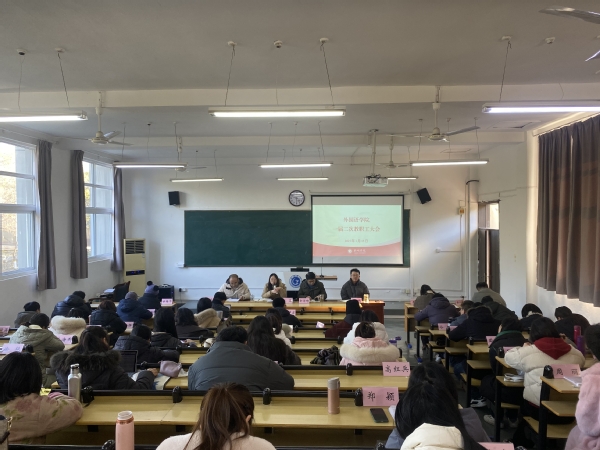 2024年1月15日上午,外國語學院勝利召開一屆二次教職工大會。學院全體教職工參加會議,會議由學院黨委副書記、紀委書記李磊主持。