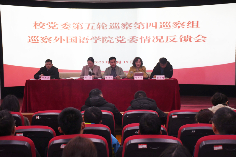 學(xué)校黨委第四巡察組全體成員,組織部副部長鄧其志以及外國語學(xué)院領(lǐng)導(dǎo)班子成員出席會議;學(xué)院全體教職員工和部分學(xué)生代表列席會議。(文/張成雷、李玲 圖/蘇冰潔 初審/李磊 終審/張蕊)