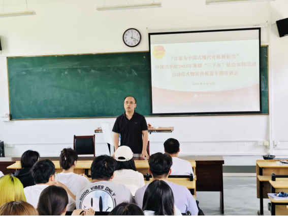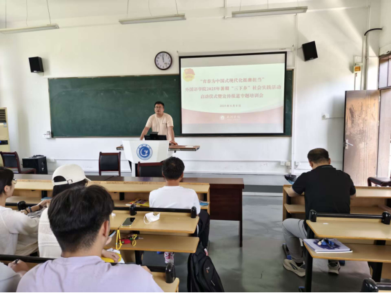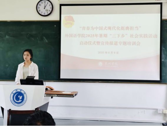為系統謀劃部署學院2025年暑期社會實踐活動,強化青年學生的宣傳報道能力培訓,鍛煉青年學生的實踐創新能力,全面提高青年學生的綜合素質,6月6日中午,外國語學院在明德樓西二教室開展2025年暑期“三下鄉”社會實踐活動啟動儀式暨宣傳報道專題培訓會,本次會議由外國語學院團委副書記余仁能主持,外國語學院黨委副書記李磊、本次實踐團隊全體成員及班級團隊負責人參會。