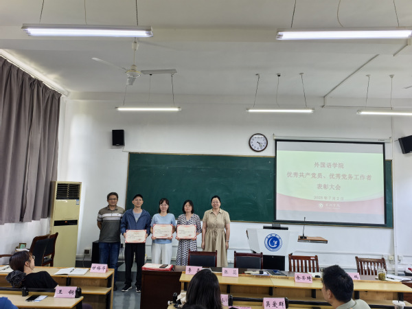 7月2日下午,學(xué)院召開外國(guó)語學(xué)院優(yōu)秀黨員、優(yōu)秀黨務(wù)工作者表彰大會(huì),表彰了學(xué)院的5名優(yōu)秀黨員、4名優(yōu)秀黨務(wù)工作者,激勵(lì)學(xué)院師生黨員向榜樣學(xué)習(xí),營(yíng)造積極向上、追趕先進(jìn)的良好氛圍。