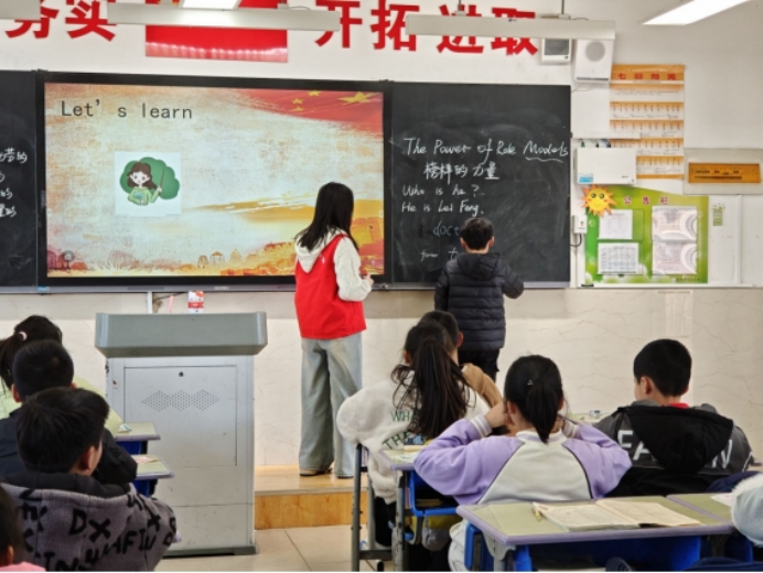 3月19日下午,實踐團隊成員赴盛橋鎮中心小學開展“榜樣力量”主題趣味英語公益課堂。課堂上,志愿者們用活潑有趣的方式,向同學們介紹雷鋒的生平事跡,講述雷鋒做好事的小故事,讓同學們深刻感受到雷鋒精神的內涵。互動環節中,志愿者引導同學們分享身邊的榜樣故事,有的同學講述了父母辛勤工作的點滴,有的分享了老師耐心教導的溫暖瞬間,現場氣氛十分活躍。