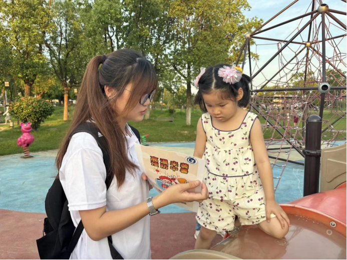 7月3日上午,實踐團隊前往盛橋鎮陡崗村開展“送教下鄉”泡泡趣味英語家庭公益課堂。活動中,團隊成員拿出事先準備好的宣傳海報,為小朋友普及電信詐騙、防溺水、防火災等基本知識。隨后,成員們拿出水彩顏料和圖畫紙與孩子一起繪畫玩耍,在圖畫紙上繪上自己喜愛的圖案。活動結束后,成員們將共同繪制的成果送給留守兒童留作紀念。此次活動讓團隊成員更加了解留守兒童的困難境況,成員們也盡自己的努力為孩子營造歡樂氛圍,努力開拓其視野,學習更多知識。