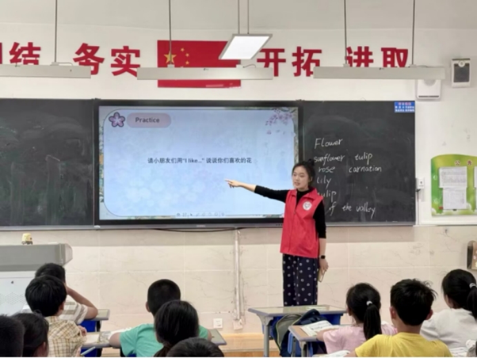 5月14日下午,實踐團隊成員赴盛橋鎮中心小學開展“花卉學習”主題趣味英語公益課堂。課堂上,志愿者們通過精美的PPT展示,將世界各地絢麗多彩的花卉一一呈現。志愿者們用流利且生動的英語,詳細介紹著這些花卉的名字、生長習性以及背后蘊含的文化寓意。志愿者溫柔的講解聲中,孩子們認真聆聽,努力跟著重復單詞,明亮的眼睛里滿是對新知識的渴望。