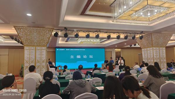 該論壇旨在探索翻譯、修辭與國際傳播學術前沿,促跨學科融通與理論創新,尋求AI時代國際傳播能力建設新路徑,邀請國內外專家學者和翻譯實踐者共議學科發展之路,共繪文明互鑒藍圖。知名學者羅選民、黃必康、胡安江、祝克懿、施旭、夏登山、沈國威、孫藝風、范大祺、張法連、趙彥春、劉志強等作主旨報告。會議特設“期刊主編論壇”,來自國內外學術期刊(含SSCI和CSSCI檢索期刊)的7位主編、執行主編齊聚一堂,圍繞期刊定位、審稿流程、投稿建議等話題展開深入交流,為與會學者和研究生提供了寶貴的學術發表指導。慕媛媛作為國際期刊International Journal of Translation, Interpretation and Applied Linguistics執行主編受大會邀請發言,并對青年學者如何進行學術論文撰寫與發表提出建議。該期刊是我院教師參與建設的國際學術期刊,自2019年創刊以來,進入谷歌學術檢索,被中國知網全文收錄,已入庫《中國人文社會科學期刊AMI綜合評價報告》,是學院近年來對外科研交流與合作的重要成果。