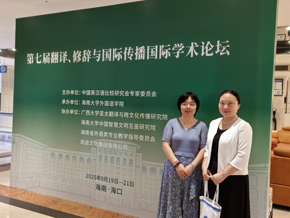 2025年9月19-21日第七屆翻譯、修辭與國際傳播國際學術論壇在海南省海口市召開,論壇主辦單位為中國英漢語比較研究會專家委員會,承辦單位為海南大學外國語學院。外國語學院教師慕媛媛、董艷受邀參加論壇,慕媛媛作為國際期刊International Journal of Translation, Interpretation and Applied Linguistics執行主編在大會作交流發言。