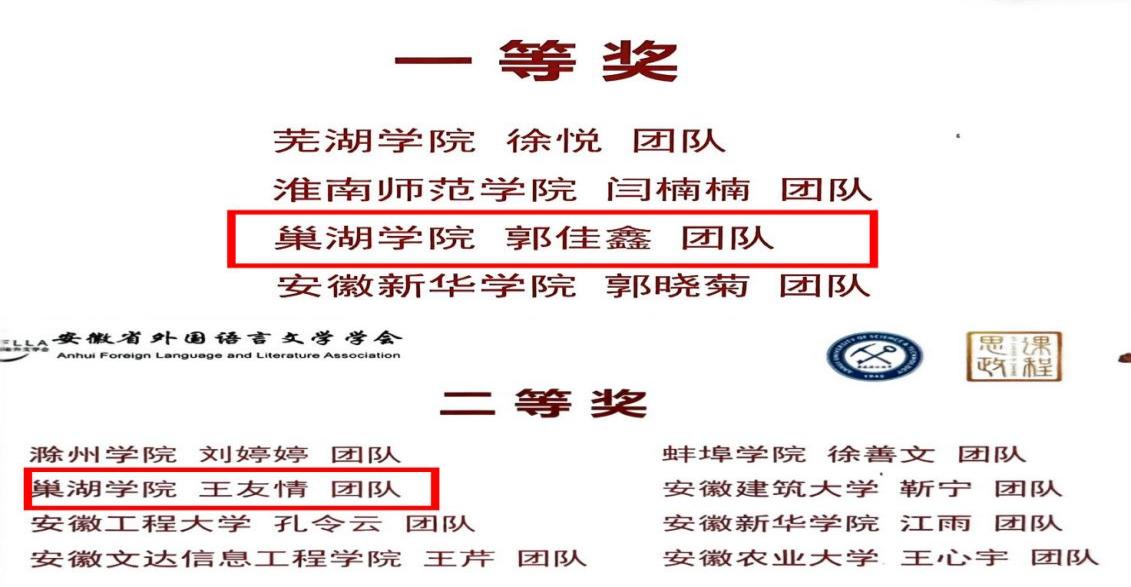 9月27日,安徽省“高教社杯”普通本科高校外語課程思政教學(xué)比賽省賽在合肥落幕。此次大賽由安徽省外國語言文學(xué)學(xué)會和高等教育出版社聯(lián)合主辦,安徽理工大學(xué)外國語學(xué)院負(fù)責(zé)承辦。安徽省本科大學(xué)英語組和英語專業(yè)組共有16件作品晉級省賽。比賽采用現(xiàn)場教學(xué)方案闡述和評委問答的形式進行。我校外國語學(xué)院郭佳鑫團隊和王友情團隊憑借扎實的教學(xué)功底、深刻的思政內(nèi)涵以及創(chuàng)新的教學(xué)設(shè)計,分別榮獲大學(xué)英語組的一、二等獎。