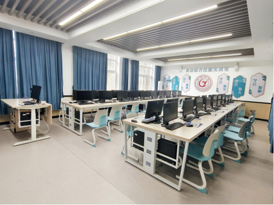 實(shí)驗(yàn)教學(xué)中心主要為英語(師范)專業(yè)和商務(wù)英語專業(yè)提供實(shí)踐教學(xué)場所,各類實(shí)訓(xùn)室擁有豐富的語言學(xué)習(xí)資源,可以幫助提升英語、日語、法語、俄語等多語種口語表達(dá)能力。商務(wù)英語綜合實(shí)驗(yàn)室擁有國際貿(mào)易實(shí)務(wù)、國際商務(wù)談判、商務(wù)英語綜合視聽說、商務(wù)英語函電、商務(wù)英語單證5款商務(wù)英語類專業(yè)實(shí)訓(xùn)平臺,和1款翻譯專業(yè)實(shí)訓(xùn)平臺:OBE翻譯教學(xué)智能管理與認(rèn)證平臺,可滿足部分商務(wù)英語類課程的教學(xué)與競賽的指導(dǎo)。英語綜合技能實(shí)訓(xùn)室擁有英語專業(yè)四八級考試系統(tǒng)、英語演講實(shí)踐教學(xué)平臺、英語寫作訓(xùn)練系統(tǒng)3款英語專業(yè)實(shí)訓(xùn)平臺,可滿足英語專業(yè)四八級的訓(xùn)練、模擬與備考,以及英語專業(yè)類課程的教學(xué)和競賽的指導(dǎo)。