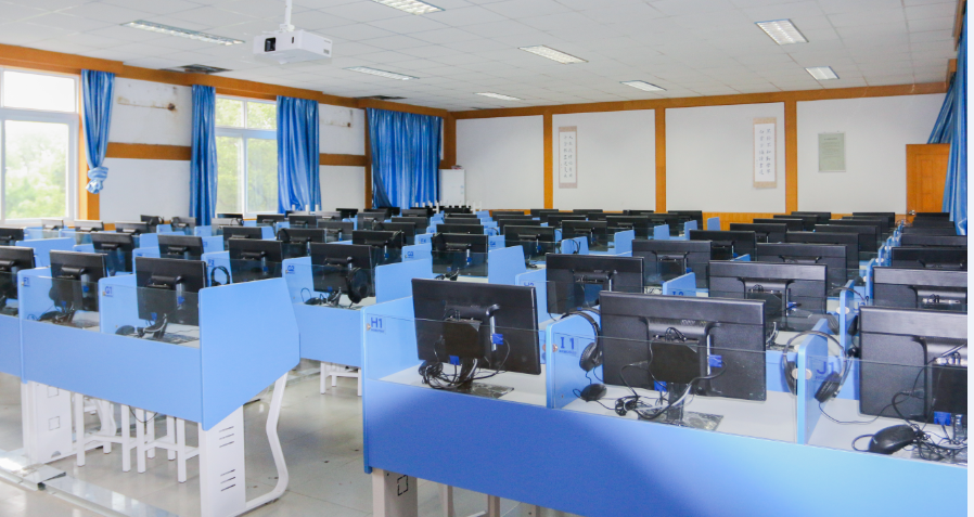 商務英語綜合實訓室于2023年2月投入使用,實訓室包含國際貿易實務實訓軟件、國際商務談判實訓系統、商務英語綜合視聽說實訓系統、商務英語函電實訓系統、OBE翻譯教學智能管理與認證平臺、商務英語單證實訓軟件,一臺教師管理主機、40臺學生機,教學管理軟件和智能交互黑板,能夠完成商務英語類相當一部分課程的教學工作,并搭配商務類比賽的參考練習工作。