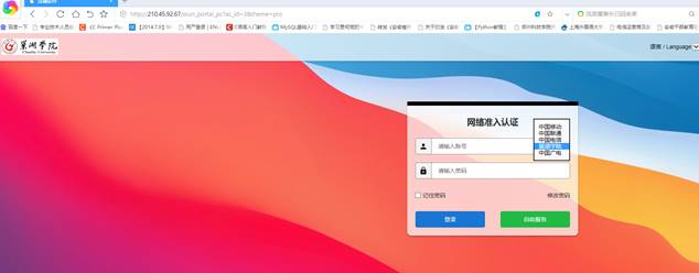 2.手機或電腦連接網絡后,在瀏覽器網址欄中輸入“210.45.92.67”進入認證界面,輸入自己的工號或學號,再選擇對應的運營商出口即可上網具體如下: