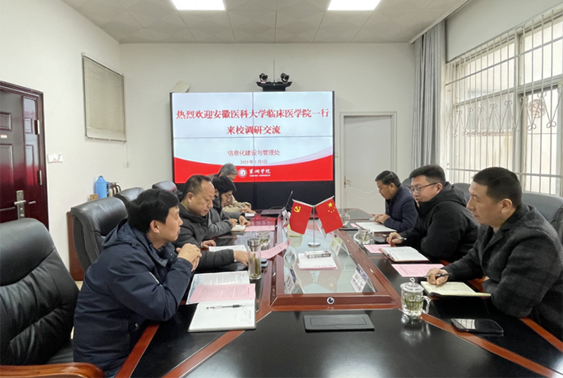 1 月 3 日上午,安徽醫(yī)科大學臨床醫(yī)學院辦公室主任祝儉一行來校調(diào)研交流信息化建設(shè)工作。巢湖學院信息化處副處長侯加兵主持本次調(diào)研座談會,黨委學工部副部長夏桂林及相關(guān)人員參加會議。
