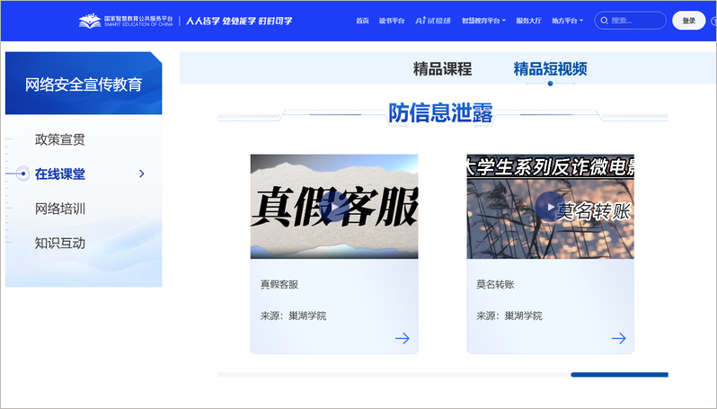 近日,教育部科技司通過國家智慧教育公共服務平臺組織開展了網絡安全宣傳教育作品展播活動。巢湖學院報送的兩件網絡安全短視頻作品《真假客服》(作者:杜文明、儲騰飛,指導老師:邢剛、許雪艷、陳立鋼)和《莫名轉賬》(作者:張藝年、張重建,指導老師:邢剛、王倩、郭超)脫穎而出,成功入選全國展播名單并入駐國家智慧教育平臺。