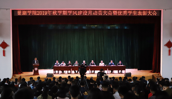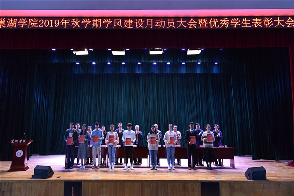 為推進“不忘初心、牢記使命”主題教育深入開展,進一步加強學風建設。11月13日下午,巢湖學院在校大禮堂隆重召開2019年秋學期學風建設月動員大會暨優秀學生表彰大會。校黨政領導出席大會。學校學風建設領導組成員,各學院分黨委副書記、副院長,全體專兼職輔導員,教師代表,學生代表等1000余人參加了大會。大會由校黨委副書記阮愛民主持。