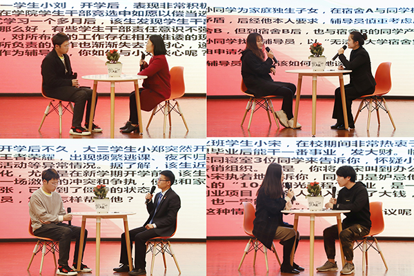 在案例分析和談心談話環(huán)節(jié),選手圍繞愛(ài)國(guó)教育、學(xué)風(fēng)建設(shè)、心理疏導(dǎo)、獎(jiǎng)助評(píng)定等問(wèn)題展開(kāi)情景模擬,將教育、管理、服務(wù)有機(jī)結(jié)合,用心幫助學(xué)生分析面臨的問(wèn)題,探討解決問(wèn)題的思路,充分展示了我校輔導(dǎo)員思想理論、語(yǔ)言表達(dá)、邏輯思維和應(yīng)急管理等多方面的素質(zhì)和能力。