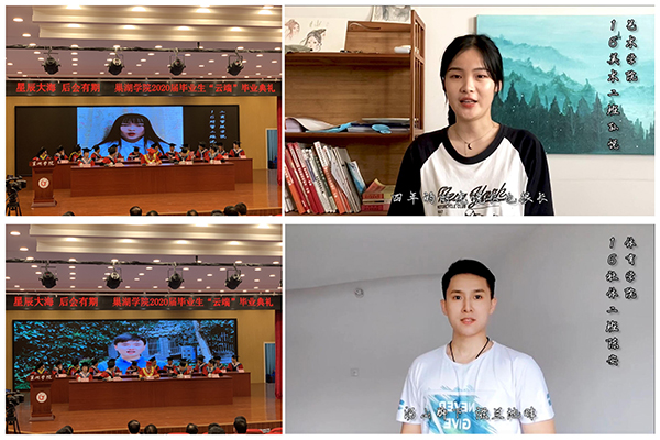 受疫情影響,2020屆畢業(yè)生無法到現(xiàn)場觀禮,但畢業(yè)學子心中對母校都承載著太多的祝福與惦念,寄托了太多的關(guān)懷與期望,現(xiàn)場共同聆聽了畢業(yè)生代表從“云端”傳來的對母校的深深祝福。