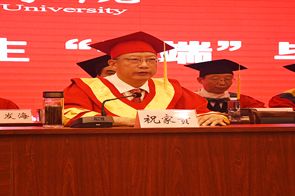 校長祝家貴教授發(fā)表題為“星辰大海 后會有期”的畢業(yè)典禮演講。他帶領(lǐng)大家回顧了大學四年的美好生活,介紹了四年里學校發(fā)生的變化,對圓滿完成學業(yè)、走向人生新征程的全體畢業(yè)生表示祝賀。史無前例的疫情使2020屆畢業(yè)生成為學校最特別的一屆畢業(yè)生。雖然沒有扶正流蘇、頒發(fā)證書、握手道別、合影留念,但相聚“云端”,心在一起。祝家貴寄語2020屆全體畢業(yè)生要堅守信念、加強學習、懂得自律。以更高的視野、更廣闊的胸懷、更持久的堅守將個人追求融入國家發(fā)展、民族進步之中;要不斷創(chuàng)新,不斷學習,做母校最好的“名片”。你們在哪里,學校的邊界就在哪里;得意時要經(jīng)得住浮華,失意時要耐得住寂寞,多陪陪家人,多關(guān)注身心健康,探尋內(nèi)心追求的真實幸福。疫情過后,歡迎大家常回母校看看,祝愿2020屆全體畢業(yè)生前程似錦!生活幸福!