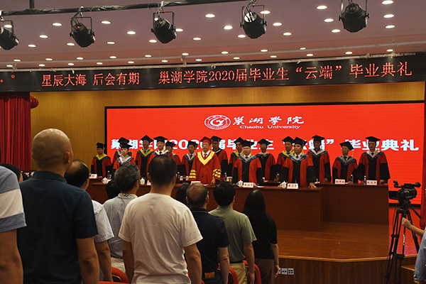 6月30日上午,巢湖學院在藝術(shù)樓報告廳隆重舉行2020屆畢業(yè)生“云端”畢業(yè)典禮。在校的校領(lǐng)導出席畢業(yè)典禮,有關(guān)職能部門負責人,各學院黨政領(lǐng)導,全體專職輔導員(畢業(yè)班專兼職輔導員)參加畢業(yè)典禮,近3萬名2020屆畢業(yè)生、畢業(yè)生家長、校友、在校生“云端”觀禮。典禮由校黨委書記朱燦平主持。疫情期間,此次典禮采取線上和線下同步連線直播方式舉行。