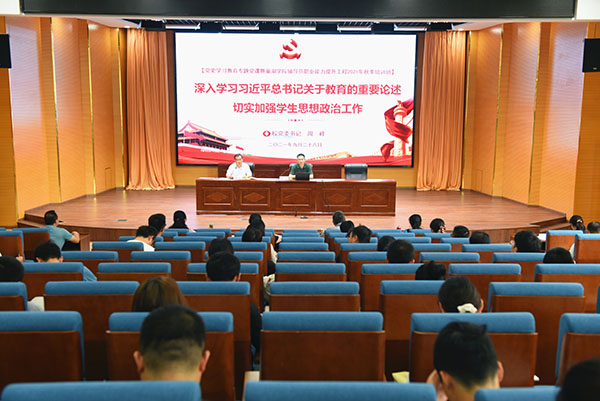 9月28日上午,巢湖學院輔導員職業能力提升工程2021年秋季培訓班啟動儀式暨首場培訓在求實樓報告廳舉行。校黨委書記周峰以黨史學習教育專題黨課的形式作題為“深入學習習近平總書記關于教育的重要論述 切實加強學生思想政治工作”的報告。校黨委副書記阮愛民和全校專兼職輔導員參加報告會。報告會由學工部部長周祥主持。