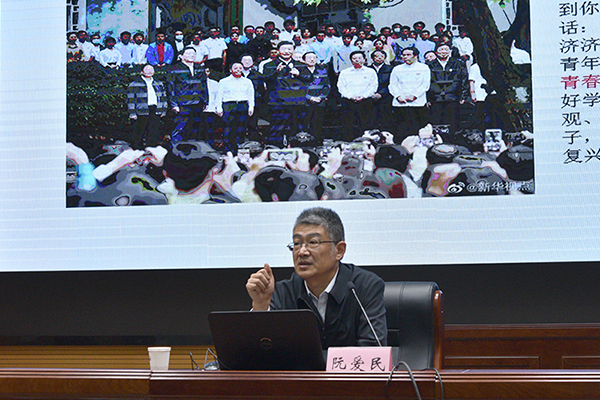 10月15日下午,校黨委副書記阮愛民為學(xué)校輔導(dǎo)員職業(yè)能力提升工程2021年秋季培訓(xùn)班授課,以黨史學(xué)習(xí)教育專題黨課的形式作題為“不負青春 不負韶華 不負時代 做新時代有志氣有骨氣有底氣的輔導(dǎo)員”的報告。全校專兼職輔導(dǎo)員參加報告會,報告會由學(xué)工部部長周祥主持。