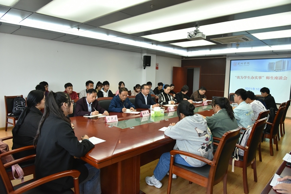 座談會上,同學們積極發言,從日常教學活動、校園生活保障、寢室基礎設施等方面提出了意見和建議。校學生會主席團成員蒯樂同學就陽光浴室設施、衛生問題提出自己的想法,并建議學校對校園自媒體平臺加強監管;旅游學院楊若晗同學希望學校能盡快改善部分女寢的居住環境;經法學院楊明威同學提出要不斷加強學風建設,營造樂學愛學的校園氛圍。相關部門老師認真聽取了同學們的訴求,并現場逐一進行解答。