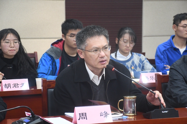 周峰與來自各學(xué)院學(xué)生代表圍坐一堂,就專業(yè)學(xué)習(xí)、大學(xué)規(guī)劃、人生成長、就業(yè)困惑等方面進(jìn)行了一場真誠深入地面對(duì)面交流。