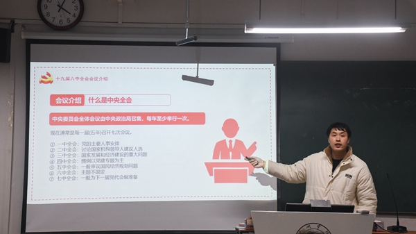 在接下來的兩周時間,宣講團成員圍繞黨的十九屆六中全會的重大意義、主要成果以及青年大學生應(yīng)該怎么看、怎么學、怎么做等內(nèi)容,對黨的十九屆六中全會精神進行了生動解讀。