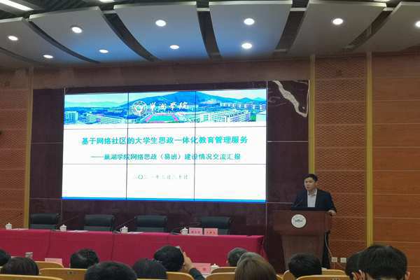 根據推進會要求,華紫武代表學校以“基于網絡社區的大學生思政一體化教育管理服務”為題,從建設目標、功能模塊、網絡社區構建等方面匯報了智慧思政平臺建設運行情況,并就易班與今日校園平臺共建互融取得的實效進行經驗交流。與會領導充分肯定我校網絡社區建設取得的成效,并希望我校進一步完善平臺建設、強化隊伍建設、豐富內容供給,提升網絡育人實效。