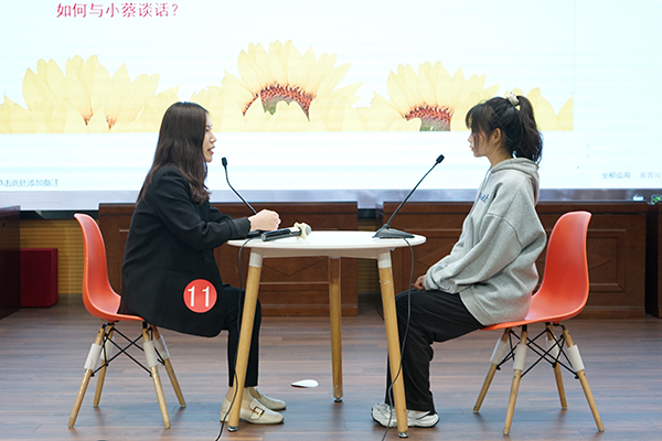 決賽包括“案例研討”“談心談話”兩個項目。案例研討環節,輔導員隨機抽題,圍繞學風建設、網貸詐騙、黨史學習教育、心理疏導、防疫管理和獎助學金評定等學生管理服務案例,以“我問你答”的方式變換角色,互相交流真知灼見,切磋管理育人技巧。談心談話環節,面對學生管理中常見的“疑難雜癥”,輔導員向學生擺事實、講道理、用真心,設身處地為學生解難題、紓困擾,并在總結陳述時就事論事闡述案例類型、提出解決思路、交流感想啟發,充分展現了我校輔導員良好的精神風貌和專業的業務水準。