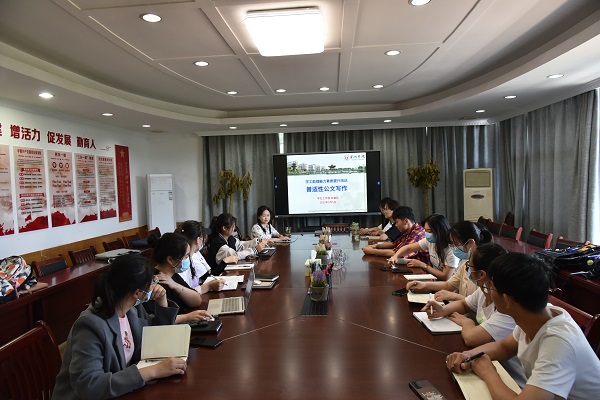 培訓過程中,學工部副部長華紫武、資助管理中心主任朱春花、大學生就業指導中心主任丁繼勇,學生管理科科員崔青星利用中午時間以“高校學生助理的政治素養與紀律意識”“普適性公文寫作”“青年大學生成長規劃指導”“大學生英語學習與職業運用”為題,結合部門工作實際、學工助理能力素質提升需求與未來發展規劃等開展培訓。