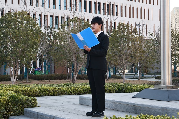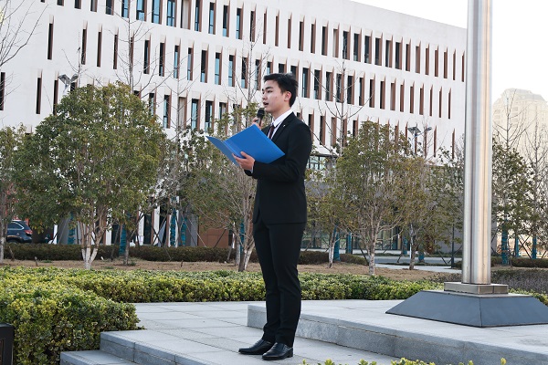 在國(guó)旗護(hù)衛(wèi)隊(duì)的護(hù)衛(wèi)下,鮮艷的五星紅旗在大家行注目禮中迎著朝陽冉冉升起,雄壯的國(guó)歌聲雄渾有力振奮人心,升國(guó)旗儀式觸動(dòng)著每個(gè)人心底對(duì)祖國(guó)的熱愛之情。隨風(fēng)飄揚(yáng)的國(guó)旗下,機(jī)械學(xué)院2021級(jí)材料成型及控制工程專業(yè)姚勇同學(xué)、電子學(xué)院2020級(jí)電子信息工程專業(yè)蘇悅同學(xué)代表青年學(xué)生,分別以“學(xué)習(xí)二十大,爭(zhēng)做新青年”“學(xué)雷鋒、放光彩,做新時(shí)代大學(xué)生”為主題作慷慨激昂演講。姚勇分享了自己響應(yīng)號(hào)召參軍入伍、屢獲嘉獎(jiǎng)的事跡,回顧了退伍復(fù)學(xué)后“退役不褪色”爭(zhēng)當(dāng)模范的成長(zhǎng)歷程,由心而發(fā)分享了自己學(xué)習(xí)黨的二十大精神的體會(huì),號(hào)召青年大學(xué)生要筑牢信仰之基,學(xué)好知識(shí)、磨煉意志、銳意進(jìn)取,為全面建設(shè)社會(huì)主義現(xiàn)代化國(guó)家貢獻(xiàn)青年之力。蘇悅動(dòng)情地傳遞了“實(shí)踐證明,無論時(shí)代如何變遷,雷鋒精神永不過時(shí)”這一重要論述,呼吁同學(xué)們要傳承和踐行偉大的雷鋒精神,使其在新時(shí)代發(fā)揚(yáng)光大,引領(lǐng)前行。兩位青年代表的演講觸及心靈、感人肺腑,殷殷之情俱系華夏,寸寸丹心皆為家國(guó)。