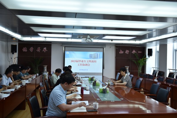 會上,學工部部長華紫武匯報了2023屆畢業生文明離校工作方案,對畢業生有關工作的時間節點、工作分工、工作要求和主要任務等方面作了說明。相關職能部門和各學院就黨團組織關系轉接、畢業證、學位證發放等事項進行了交流溝通。