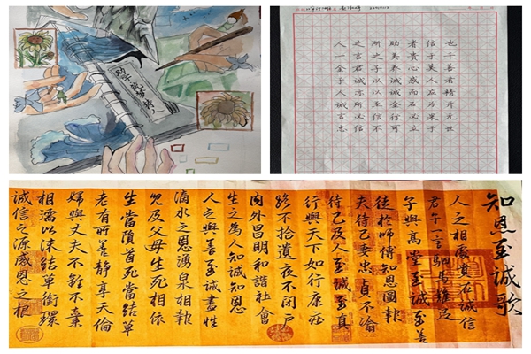 一場征文比賽。文學與傳媒學院、外國語學院、教師教育學院、工商管理學院等開展了誠信主題征文比賽,各學院各年級受資助的學生積極參加,作品主題鮮明,內容積極向上,展現了學校青年學子良好的精神面貌。