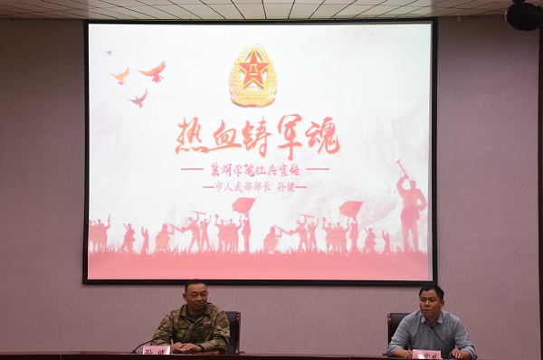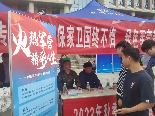 學校堅持創新思維,線上線下做好征兵宣傳工作,大力營造入伍光榮的良好氛圍。充分利用桁架、橫幅、電子屏、海報等傳統宣傳方式,在教學樓、辦公樓、食堂等人流量大的地方播放入伍宣傳片,展示入伍先進典型;充分發揮退伍大學生積極作用,開展“宿”說征兵活動,武裝部組織退伍學生集中走進宿舍,點對點面向畢業班學生宣傳征兵政策。積極利用易班·今日校園、微信群、QQ群等線上平臺,多維充分轉發大學生應征入伍政策以及報名注意事項,讓每一名畢業生都能知曉應征入伍政策并掌握報名流程。春、秋征兵季主動邀請巢湖市人武部有關領導來校宣講應征入伍政策,軍地合力動員號召大學生踴躍報名參軍。將“征兵宣傳臺”搬進學校大型就業招聘會,為畢業生參軍圓夢提供便捷咨詢服務。邀請退役畢業生代表,在畢業典禮現場開展宣誓活動,展示軍人風采,創新征兵宣傳,用創新賦能學校征兵宣傳工作取得積極成效。