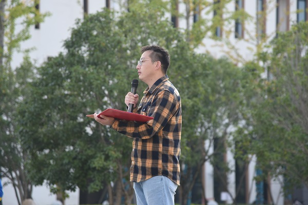 鮮艷的紅旗下,化材學院2023級新能源材料與器件專業程陽威同學作“以青春之我,建青春之國”主題演講。他認為,作為時代的創造者和奮斗者,青年人要立鴻鵠志,以“功成不必在我,功成必定有我”的歷史使命感,接過新時代的接力棒,勇于擔當青春責任,做時代的“奮楫勇進者”,在不斷探索中提高自身的綜合素質和能力,用熱血揮灑青春,用汗水澆灌勝利的果實。