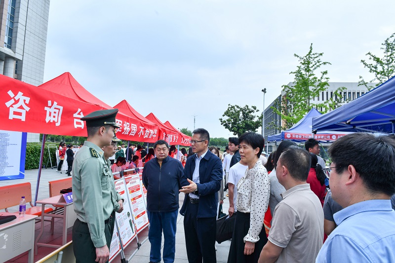 一是創新“招聘會+政策宣傳”。5月11日,學校將征兵宣傳搬進“人才興皖‘就’在江淮”省級系列就業招聘會環巢湖區域分會暨巢湖學院2024屆畢業生春季雙選會現場,邀請巢湖市人武部政委一行,現場面向畢業生宣講征兵政策,解答兵種選擇、發展前景等問題,先后有100多名學生來到展臺前進行咨詢,20余名畢業生現場填寫了意向入伍登記表。