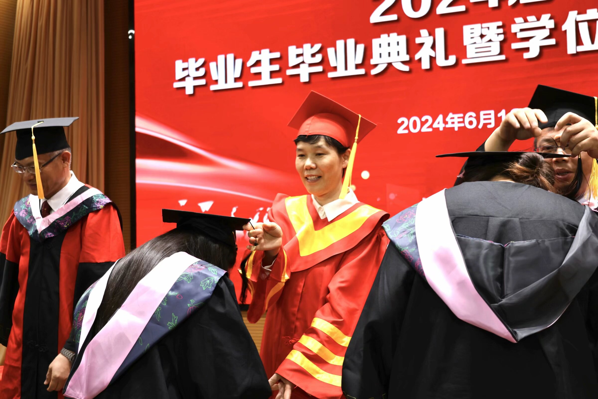 伴隨著莊嚴的《加冕進行曲》,校領導、各學院院長依次為畢業生代表頒發學位證書、扶正流蘇。