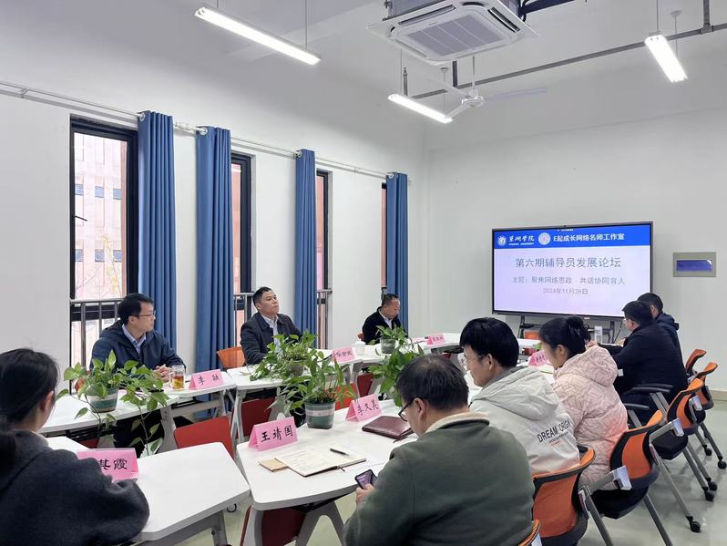為進(jìn)一步加強(qiáng)輔導(dǎo)員隊(duì)伍和名師工作室建設(shè),提升輔導(dǎo)員職業(yè)素養(yǎng),11月28日下午,巢湖學(xué)院在崇學(xué)樓中208“E起成長網(wǎng)絡(luò)名師工作室”舉辦第六期輔導(dǎo)員發(fā)展論壇暨“聚焦網(wǎng)絡(luò)思政 共話協(xié)同育人”交流活動(dòng)。黨委學(xué)生工作部部長華紫武、副部長夏桂林,機(jī)械工程學(xué)院黨委副書記、紀(jì)委書記李融和“E起成長網(wǎng)絡(luò)名師工作室”全體成員參加活動(dòng)。活動(dòng)由夏桂林主持。