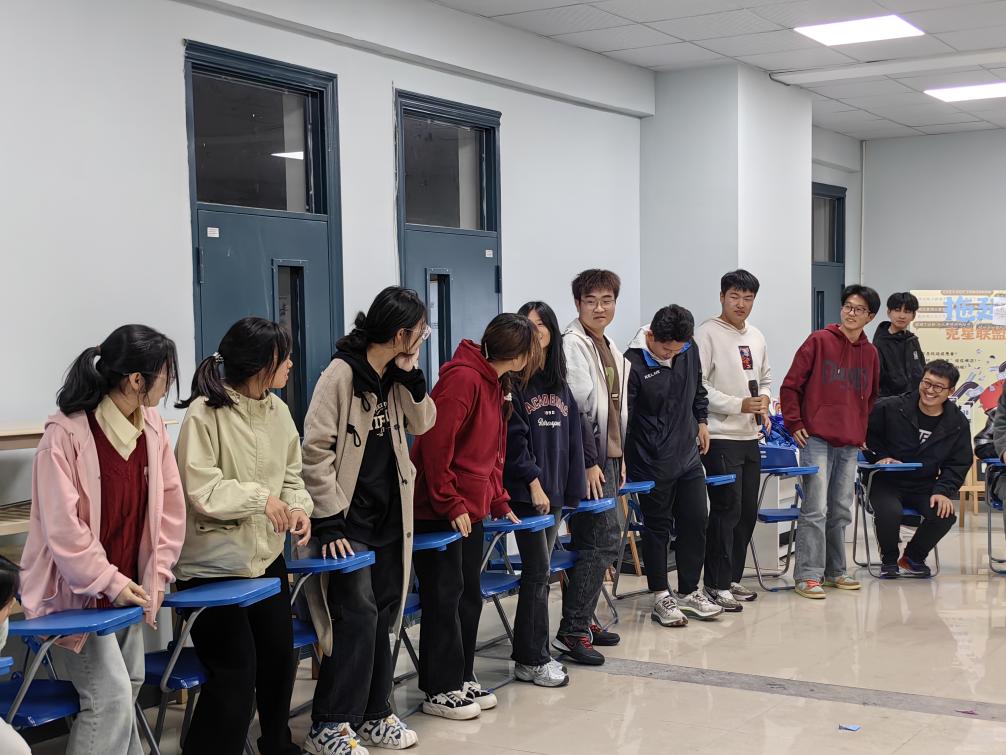 活動(dòng)在一片歡聲笑語中拉開帷幕,首先登場的是熱身游戲 ——“看我眼色”。游戲規(guī)則十分有趣,所有成員圍坐成一個(gè)圓圈,如同緊密相連的同心圓一般。接著,報(bào)數(shù)環(huán)節(jié)開始,大家依次喊出 1、2、3……,與此同時(shí),每喊出一個(gè)數(shù)字,坐在報(bào)數(shù)者右手邊相應(yīng)數(shù)量的人需要迅速起身。這個(gè)過程就像是一場充滿趣味的默契考驗(yàn),每一個(gè)數(shù)字都是一次挑戰(zhàn)。在游戲過程中,那些站錯(cuò)或者未能及時(shí)站起來的同學(xué),將會(huì)接受扎氣球懲罰。這看似小小的懲罰環(huán)節(jié),卻為整個(gè)游戲增添了更多歡樂元素。隨著游戲的推進(jìn),現(xiàn)場氣氛愈發(fā)高漲,同學(xué)們的歡笑聲此起彼伏。通過這個(gè)小游戲,不僅增強(qiáng)了同學(xué)們的判斷力和反應(yīng)能力,活躍了團(tuán)體氛圍,也拉進(jìn)了團(tuán)體成員之間的距離。