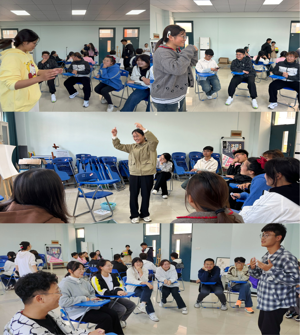 楊帆帶領(lǐng)的“情緒積木”將情緒表達(dá)和團(tuán)隊(duì)協(xié)作相結(jié)合,讓新生在積木搭建過程中學(xué)會與他人合作共同面對挑戰(zhàn)。大家抽取不同顏色的情緒色卡,通過肢體語言來表達(dá)對應(yīng)色卡所代表的情緒。在這個過程中,大家學(xué)會了正確識別和理解他人的感受,增進(jìn)了彼此之間的情感交流。新生們積極地分享道:“通過這個游戲,我發(fā)現(xiàn)原來大家都有相似的情緒困擾,這讓我感到不再孤單。”有些成員在游戲過程中即使出現(xiàn)失誤,但受到其他成員的鼓勵后仍然會堅(jiān)持完成。這不僅是在游戲上的積木搭建更是心靈的搭建。