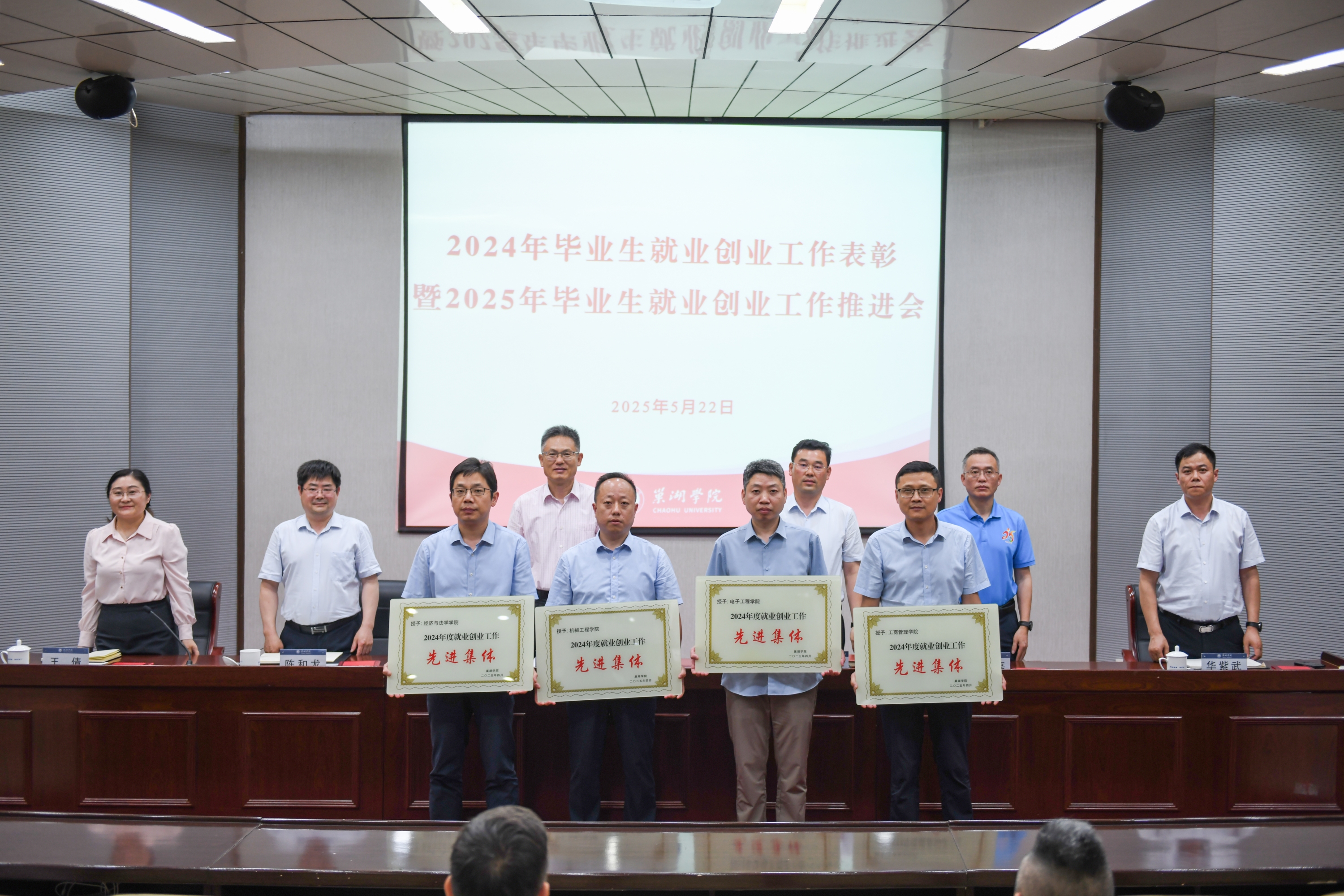 會上,學工部部長華紫武回顧了學校2024屆畢業生就業創業工作開展情況,從重點推進舉措和當前就業進度兩個維度對2025屆畢業生就業創業工作進展情況進行了詳細介紹。表彰環節,辦公室主任陳和龍宣讀了《關于表彰2024年度就業創業工作先進集體和先進個人的決定》。周峰、宋立敏為經濟與法學學院、機械工程學院、電子工程學院、工商管理學院4個學院頒發“就業創業工作先進集體”獎牌,就業創業工作領導小組成員共同為趙慧中、李玲、方錢、陳浩、曾鵬、任冰冰、管成功、邢權8位老師頒發“就業創業工作先進個人”榮譽證書。