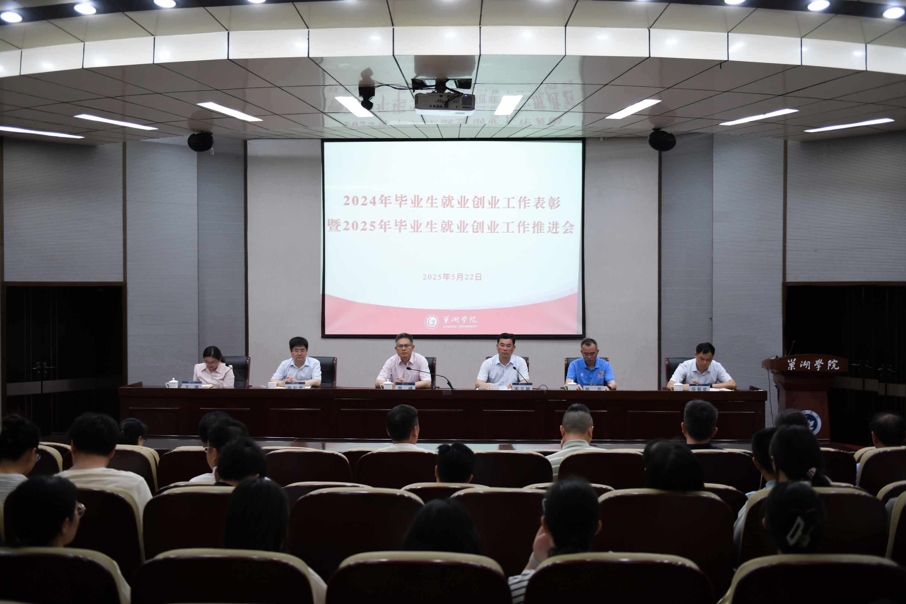 為全面回顧總結2024屆畢業生就業創業工作,深入貫徹黨中央、國務院關于高校畢業生就業工作的決策部署,深入落實全國、全省高校畢業生等青年就業創業工作視頻會議精神,對2025屆畢業生就業創業工作進行再部署、再動員,5月22日下午,巢湖學院2024屆畢業生就業創業工作表彰暨2025屆畢業生就業創業工作推進會在致知樓報告廳舉行。校黨委書記周峰、黨委副書記宋立敏,校就業創業工作領導小組成員,各二級學院黨政主要負責人、分管學生工作負責人、就業創業工作聯絡員和2024屆、2025屆畢業班專兼職輔導員等參加會議。會議由宋立敏主持。