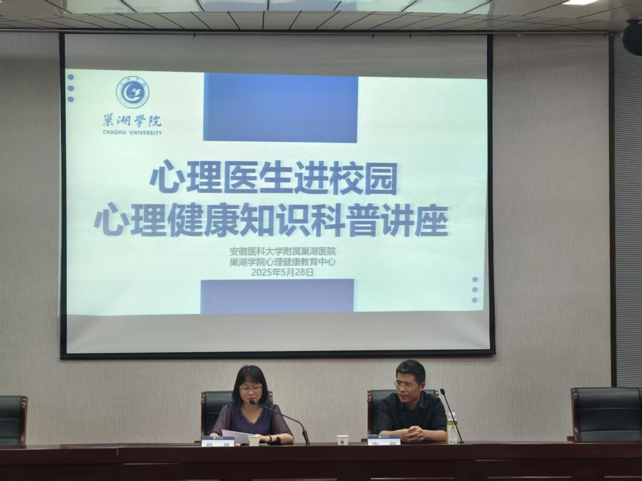 為進一步提升學生心理健康素養,幫助學生正確認識常見心理問題,掌握科學的心理調適方法,營造積極健康的校園心理氛圍,2025年5月28日下午,安徽醫科大學巢湖附屬醫院精神科、巢湖學院心理健康教育中心聯合開展了“心理醫生進校園”系列主題活動。