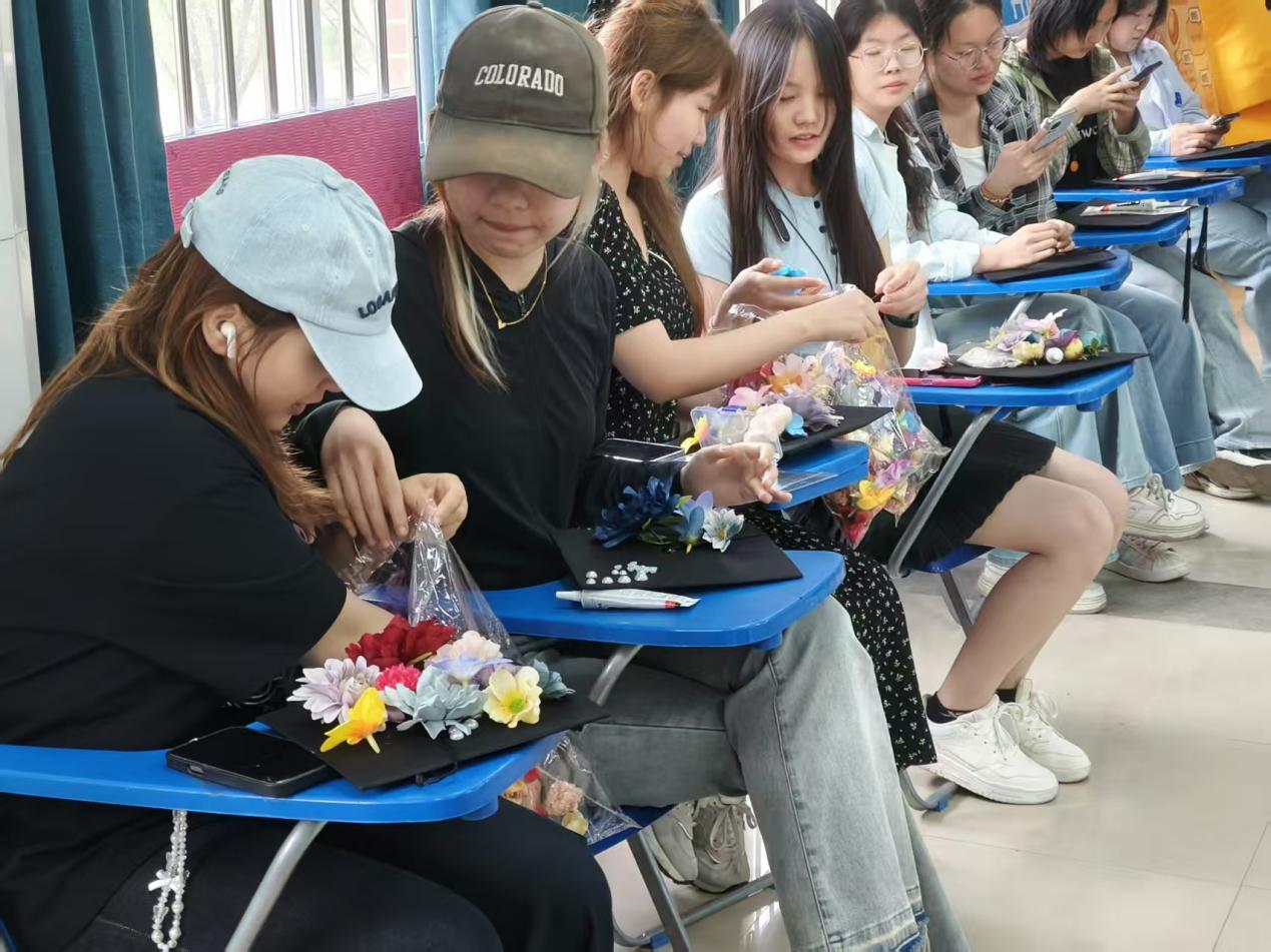 活動壓軸環(huán)節(jié)是傳統(tǒng)的學(xué)士帽簪花儀式。在老師的指導(dǎo)下,同學(xué)們將鮮花、珍珠等裝飾品精心點綴在學(xué)士帽上。24級應(yīng)用心理學(xué)專業(yè)孫悅同學(xué)說:“這次活動很精彩,雖然制作過程有點坎坷,但看到自己親手做的學(xué)士帽,真的很能感受到畢業(yè)季的氛圍。”通過這種手工形式,讓同學(xué)們提前感受畢業(yè)文化,增強對學(xué)校的歸屬感。