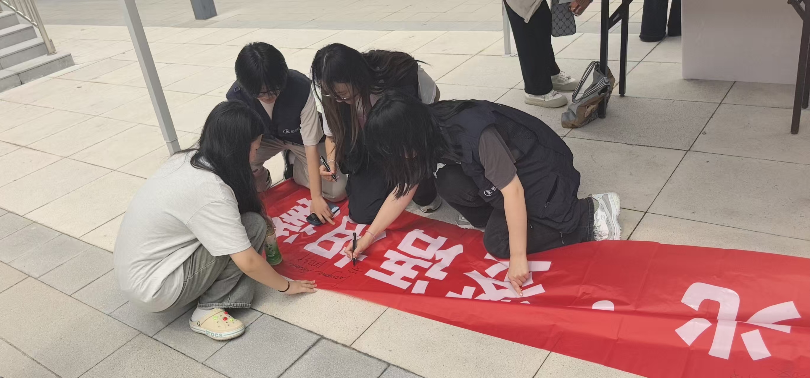青春執筆,心跡同框。參與者在參加完以上的活動后可以在“扭出心光·簽語相逢”橫幅上寫下自己的感受和激勵自己的話。