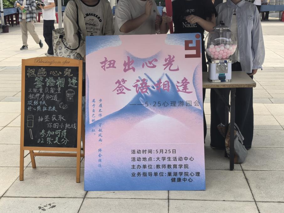 5月28日下午,巢湖學院心理健康教育中心在大學生活動中心開展了以“扭出心光·簽語相逢”為主題的心理活動。活動以心理知識和趣味游戲相結合的方式,旨在幫助在校生加深對心理健康知識的了解。本次活動由教師教育學院啟明星心理協會主辦,校心理健康教育中心指導。