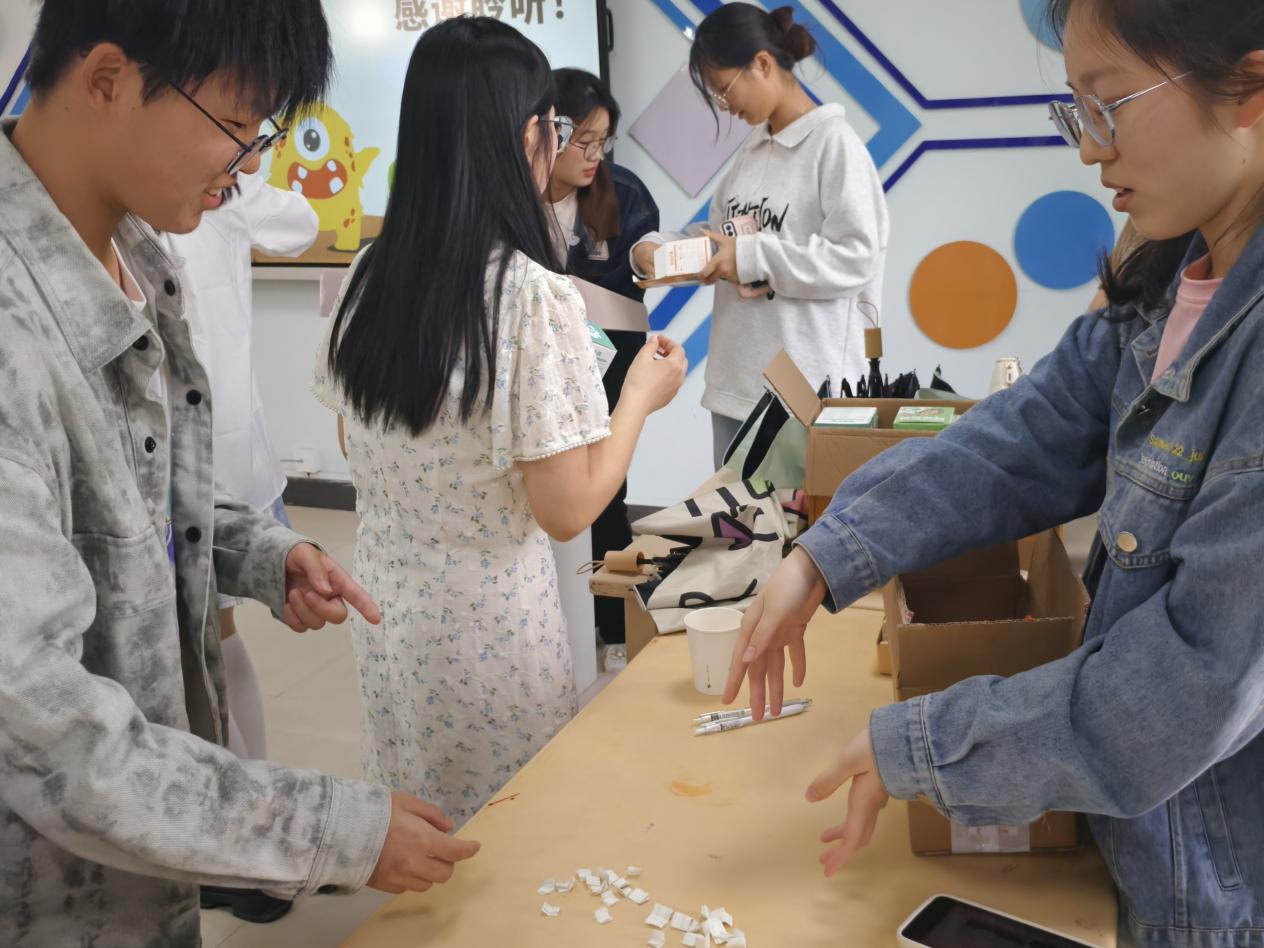 活動接近尾聲,工作人員組織同學們抽取盲盒、領取小禮品。同學們滿懷期待地抽取盲盒,收獲了一份份充滿驚喜的小禮物,臉上綻放出燦爛的笑容。