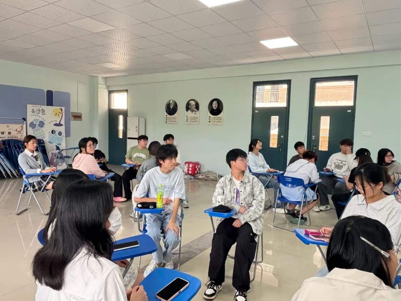 活動伊始,余薇對到場同學表示熱烈歡迎,并深入淺出地闡釋了幸福的內涵,為活動奠定了溫暖而積極的基調。緊接著,熱身環節中,劉海珠帶領同學們進行幸福拍拍操。在歡快的節奏里,同學們跟隨著指令有序地拍手、跺腳,臉上洋溢著輕松愉悅的笑容,現場氣氛迅速升溫,大家也漸漸融入幸福的氛圍之中。