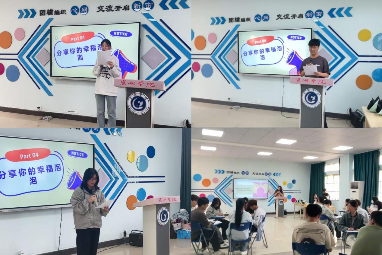 為幫助大學生發現生活中的小確幸,在分享中感受幸福的力量,將幸福傳遞給身邊的每一個人,共同營造積極、溫暖、充滿幸福感的生活氛圍。巢湖學院心理健康教育中心在心理健康宣傳教育月開展“以美潤心”系列活動“把幸福吹進泡泡里”。本次活動于2025年4月16日下午3:00在藝術樓二樓西203心理健康團輔室順利開展,活動由心理健康教育中心余薇主持。
